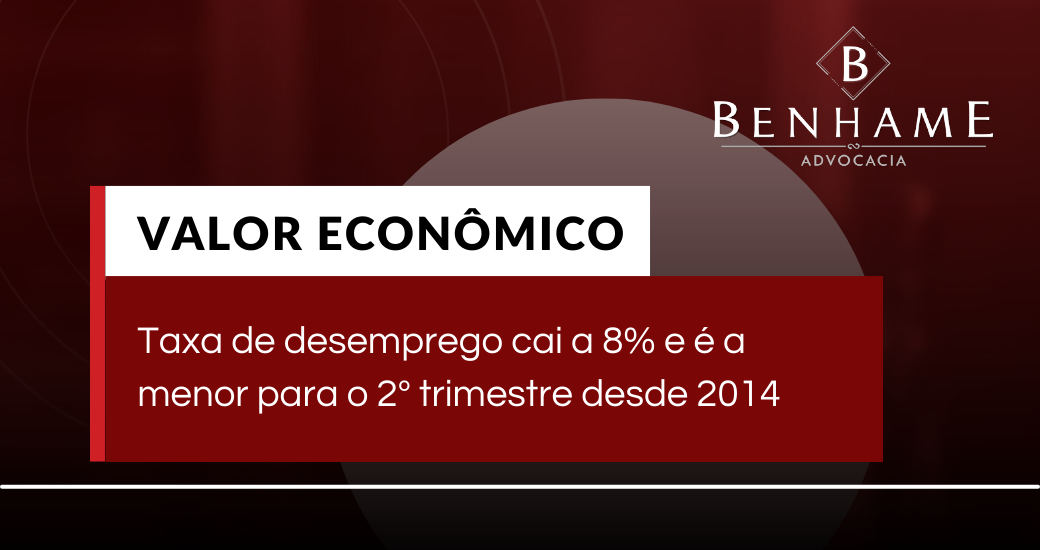 Taxa de desemprego cai a 8% e é a menor para o 2º trimestre desde 2014
