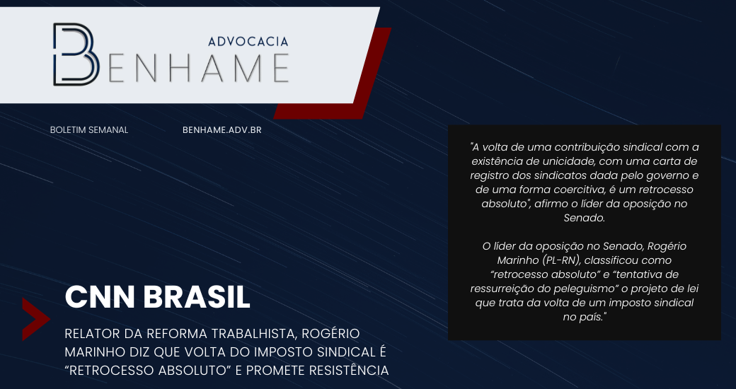 O líder da oposição no Senado, Rogério Marinho (PL-RN), classificou como “retrocesso absoluto” e “tentativa de ressurreição do peleguismo” o projeto de lei que trata da volta de um imposto sindical no país.