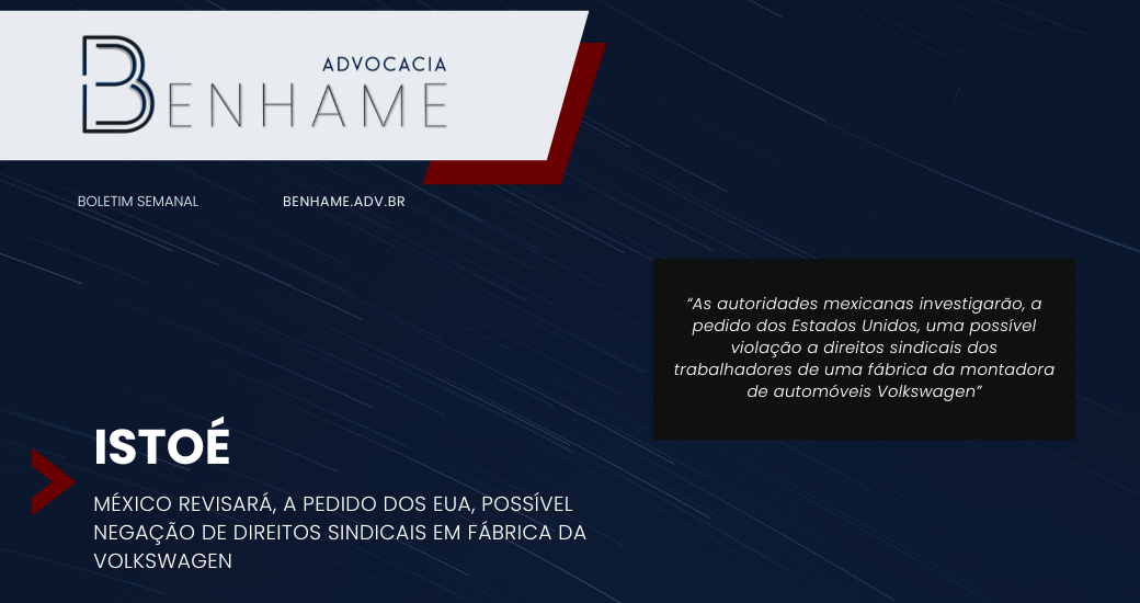 “Estamos profundamente preocupados com as supostas violações à liberdade sindical na planta da Volkswagen em Puebla”, afirmou Katherine Tai, a representante comercial dos EUA citada no boletim.