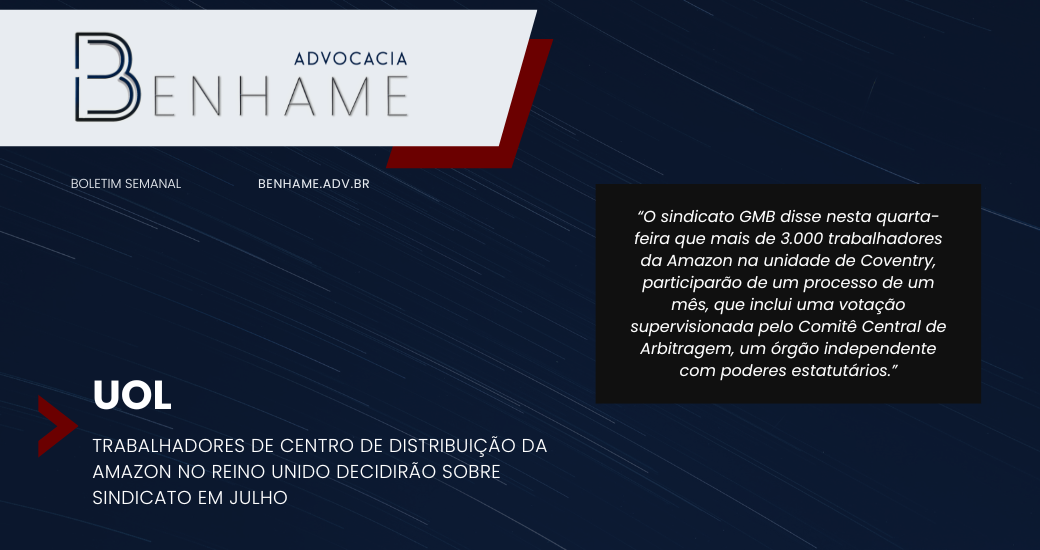 O sindicato GMB disse nesta quarta-feira que mais de 3.000 trabalhadores da Amazon na unidade de Coventry, no centro da Inglaterra, participarão de um processo de um mês, que inclui uma votação supervisionada pelo Comitê Central de Arbitragem, um órgão independente com poderes estatutários.