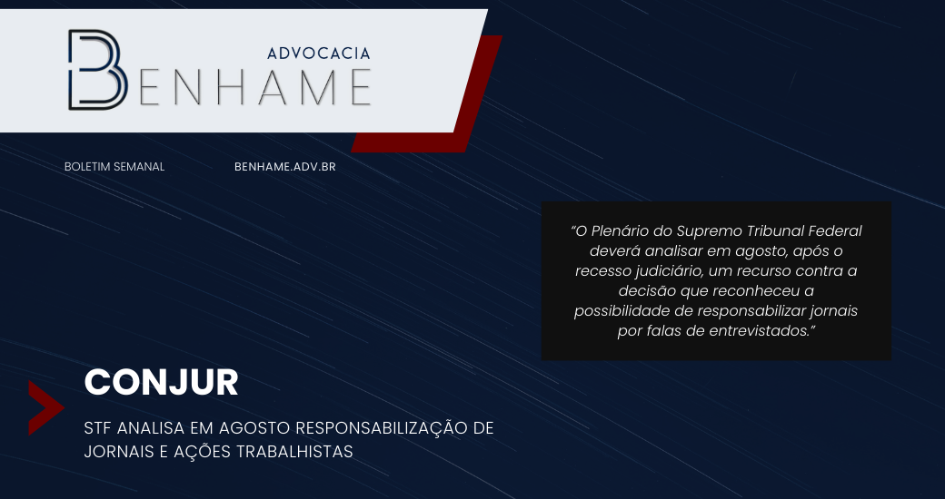 STF analisa em agosto responsabilização de jornais e ações trabalhistas