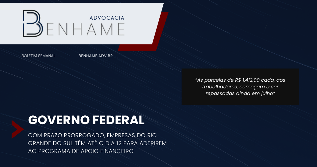 O Ministério do Trabalho e Emprego (MTE) prorrogou o prazo para as empresas dos municípios em estado de calamidade ou situação de emergência no Rio Grande do Sul aderirem ao programa emergencial de Apoio Financeiro para trabalhadores e trabalhadoras do estado. Com a mudança, as empresas, que tinham até o dia 26 de junho, têm agora até o dia 12 de julho para fazer adesão pelo portal Emprega Brasil – Empregador. O apoio financeiro é de duas parcelas de R$ 1.412,00 cada, durante os meses de julho e agosto. Em contrapartida, a empresa garante o emprego e o salário do funcionário nos outros dois meses (setembro e outubro).