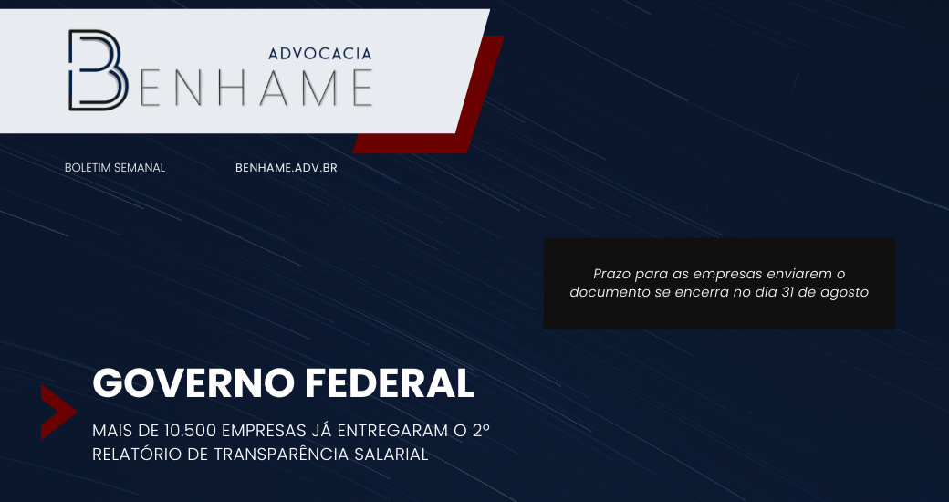 O prazo para as empresas com 100 ou mais trabalhadores entregarem o Relatório de Transparência Salarial e de Critérios Remuneratórios está chegando ao fim. As empresas têm até o dia 31 de agosto para enviar o documento pelo Portal Emprega Brasil, em conformidade com a Lei de Igualdade Salarial. Até o momento, mais de 10.500 empresas já entregaram o documento.
