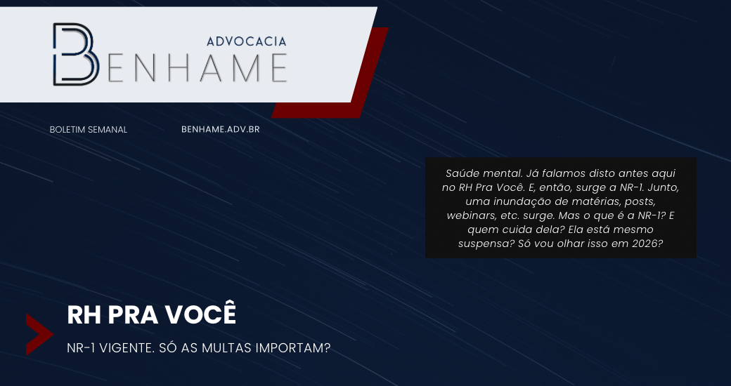 Mas o que é a NR-1? E quem cuida dela? Ela está mesmo suspensa? Só vou olhar isso em 2026? (Ufa?)