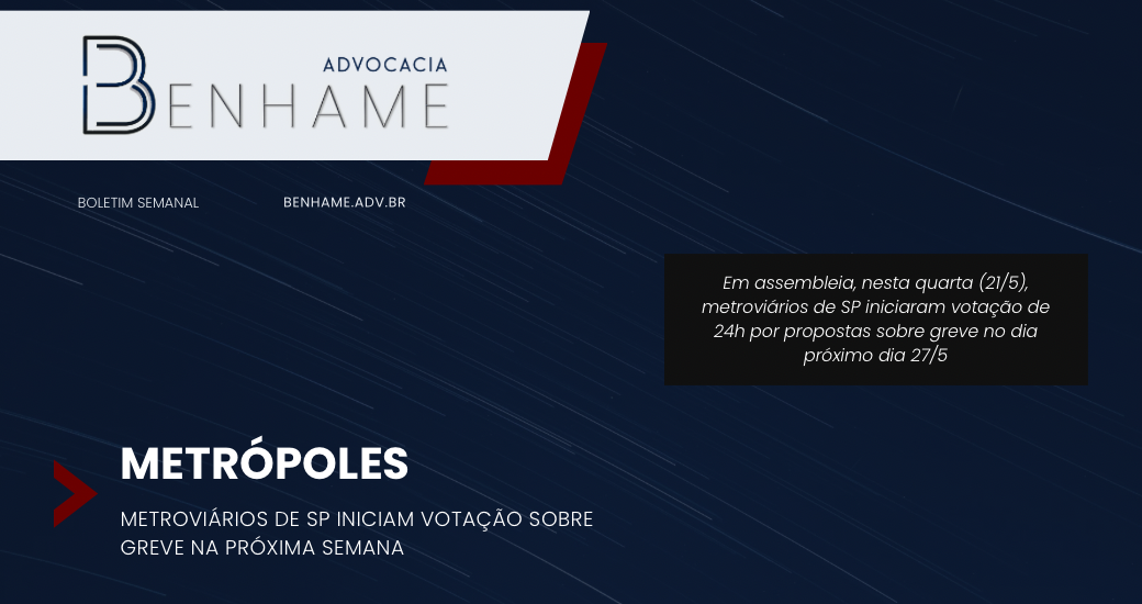 Em assembleia realizada na noite desta quarta-feira (21/5), o Sindicato dos Metroviários e Metroviárias de São Paulo iniciou a votação de propostas pela campanha salarial e estabilidade no emprego. Caso a entidade não aceite a proposta encaminhada pelo Metrô, uma greve deve ser deflagrada na próxima terça-feira (27/5). O resultado da votação deve ser conhecido em 24h, nesta quinta (22/5).