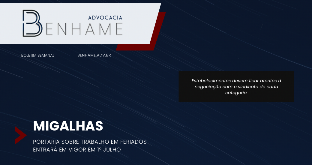 A partir de 1º de julho de 2025, entra em vigor da portaria 3.665/23, que regulamenta o trabalho em feriados no comércio.