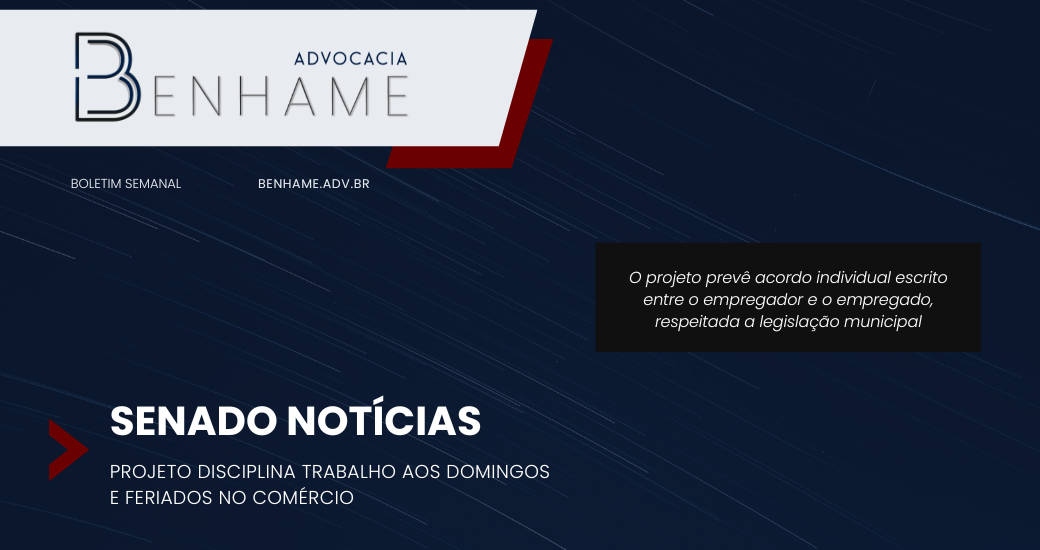 Um projeto recentemente apresentado no Senado disciplina o trabalho aos domingos e feriados, no comércio, por acordo individual entre empregadores e empregados. O PL 2.728/2025, do senador Mecias de Jesus (Republicanos-RO), ainda não foi encaminhado para as comissões.