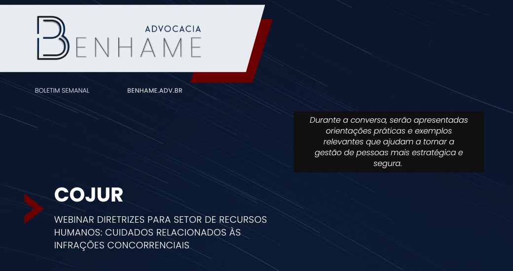 O Núcleo de Direito Concorrencial do Comitê Jurídico da Câmara Italiana convida para o webinar “Diretrizes para o Setor de Recursos Humanos: cuidados relacionados às infrações concorrenciais”, um encontro online que vai discutir os principais cuidados que profissionais e empresas do setor de RH devem adotar para prevenir riscos de infrações às normas concorrenciais.