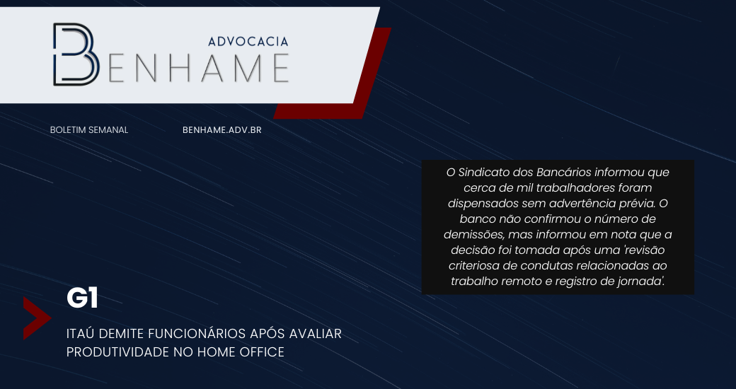 O Itaú demitiu nesta segunda-feira (8) cerca de mil funcionários que atuavam em regime híbrido ou remoto, informou o Sindicato dos Bancários. A medida foi tomada após a instituição financeira avaliar a produtividade dos colaboradores no home office.