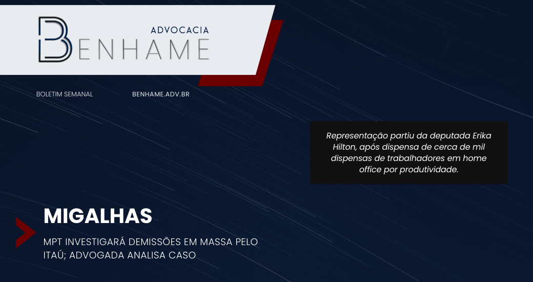 O MPT abriu investigação para apurar as recentes demissões de cerca de mil funcionários do banco Itaú, a maioria em regime de teletrabalho ou híbrido. Procedimento atendeu a representação protocolada pela deputada federal Erika Hilton na última quinta-feira, 11.