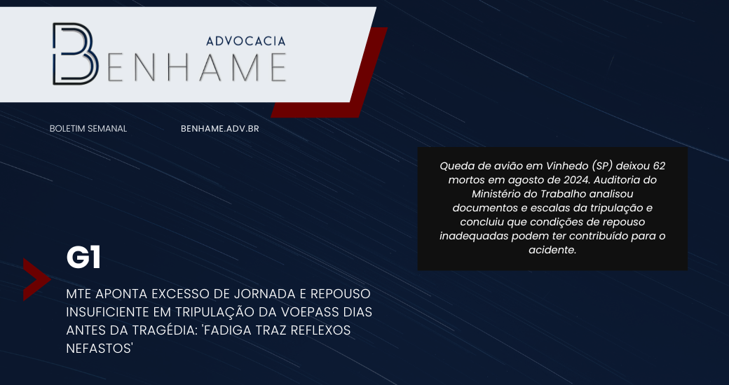 O auditor do Ministério do Trabalho e Emprego (MTE) que participou da investigação do acidente do voo 2283, que caiu deixando 62 mortos em Vinhedo (SP), em agosto de 2024, afirmou que tanto o comandante quanto o copiloto “não descansaram o período previsto em lei e realizaram jornadas superiores ao permitido nos dias que antecederam a queda da aeronave”.