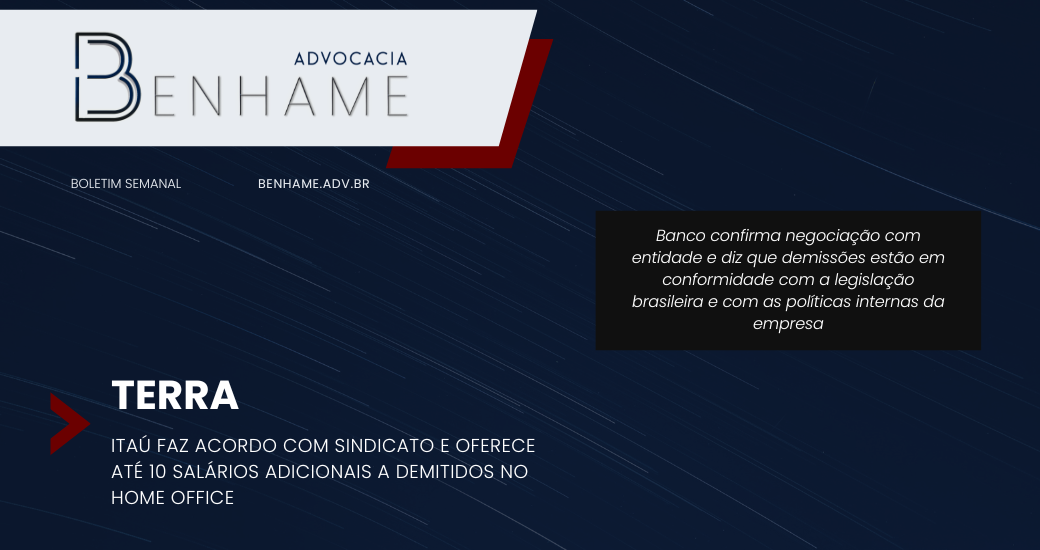 O Itaú Unibanco entrou em acordo com o Sindicato dos Bancários de São Paulo, Osasco e Região para o pagamento de até 10 salários mínimos adicionais aos funcionários demitidos pelo banco, em setembro deste ano, com a justificativa de baixa produtividade no trabalho remoto. De acordo com a entidade da categoria, o acordo prevê valor fixo de R$ 9 mil, 13ª cesta-alimentação e manutenção da taxa de financiamento imobiliário diferenciada aos ex-funcionários.