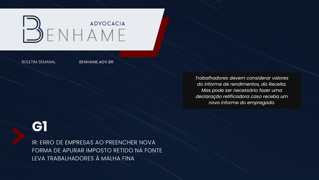 IR: erro de empresas ao preencher nova forma de apurar imposto retido na fonte leva trabalhadores à malha fina